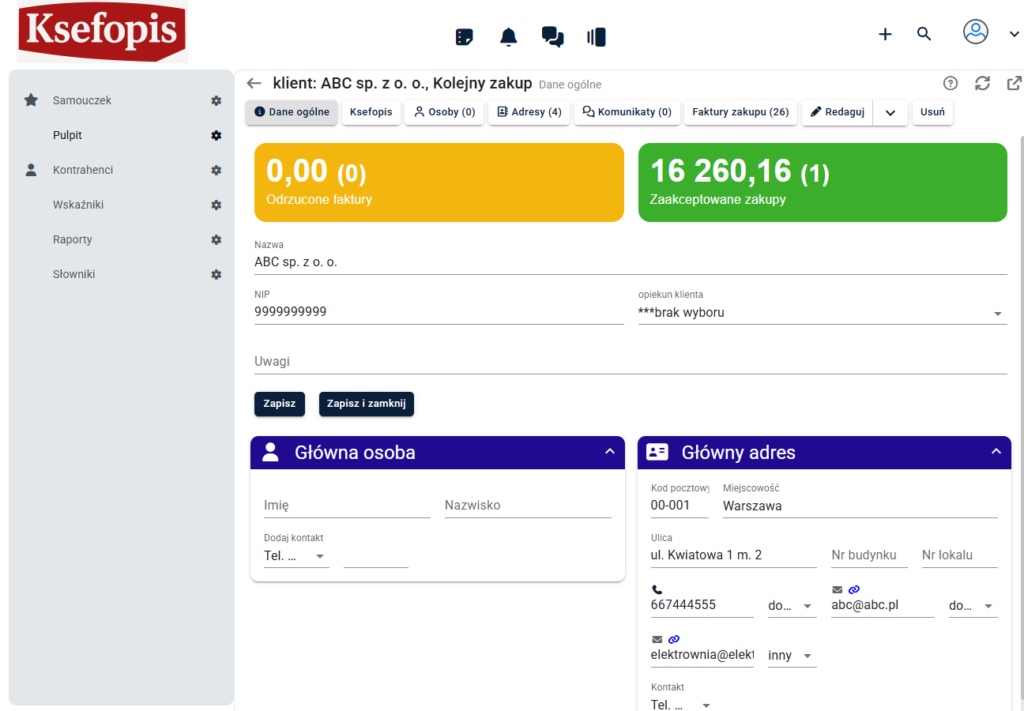 • historia zakupów u kontrahenta